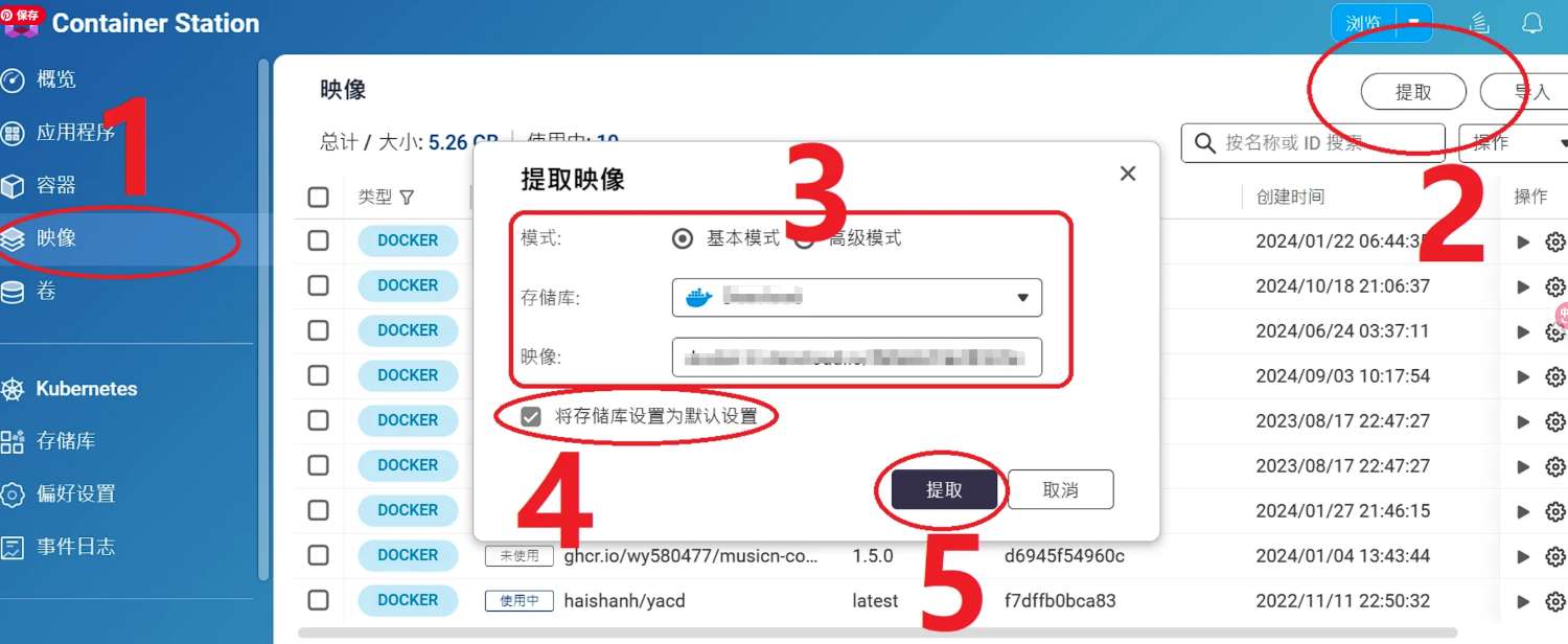 - 进入 Container Station → 映像 → 提取